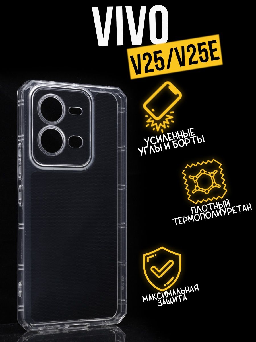 Главная Ι Чехлы, накладки и сумки для сотовых телефонов Ι Силиконовый чехол с защитой для камерыСиликоновый чехол противоударный с защитой для камеры Premium для Vivo V25/V25e, прозрачный