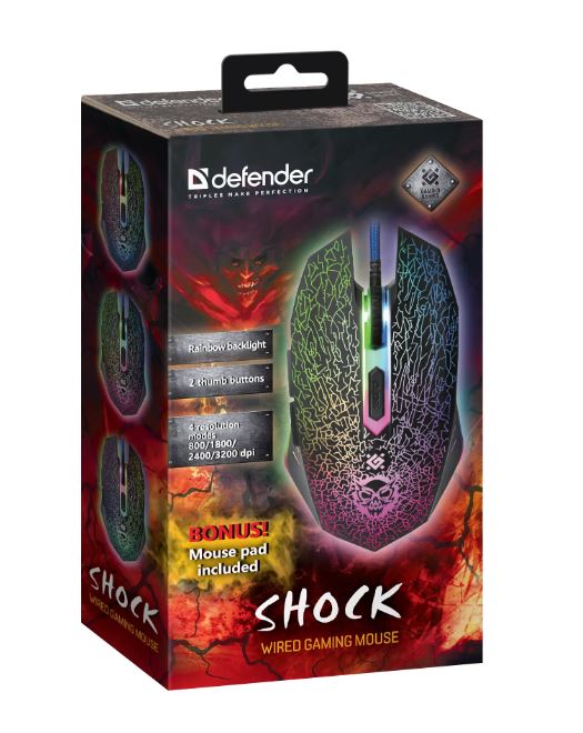 Игровая мышь Defender Shock GM-110L сочетает в себе высокую производительность, эргономичный дизайн и доступную цену — идеальный выбор для геймеров, ценящих надёжность и функциональность. В комплекте — коврик для мыши, что делает набор готовым к использованию сразу после распаковки.