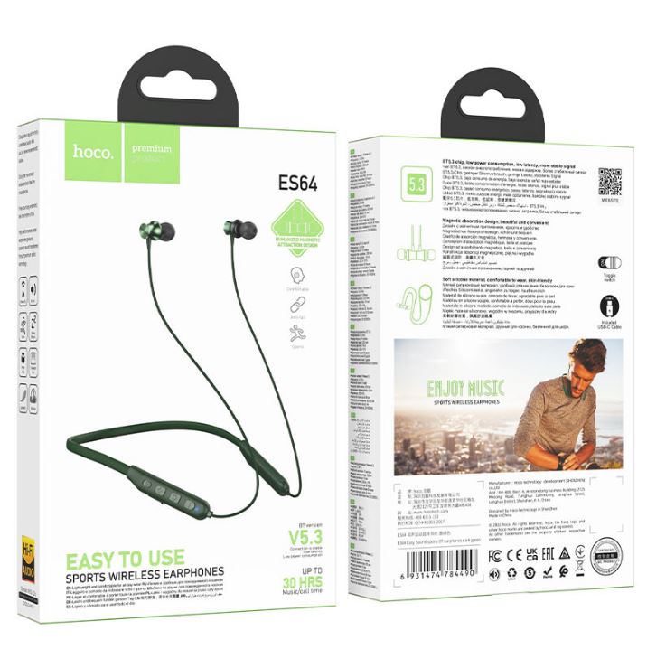 Главная Ι Наушники для мобильных устройств Ι Наушники HOCOНаушники внутриканальные HOCO ES64, Easy Sound, Bluetooth, зеленые