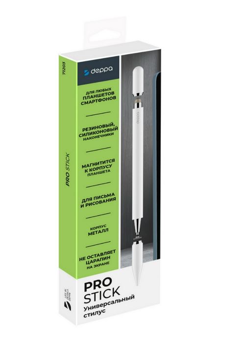 Главная Ι Разное полезное Ι СтилусыСтилус универсальный Pro Stick для планшетов и смартфонов, белый, Deppa 71203