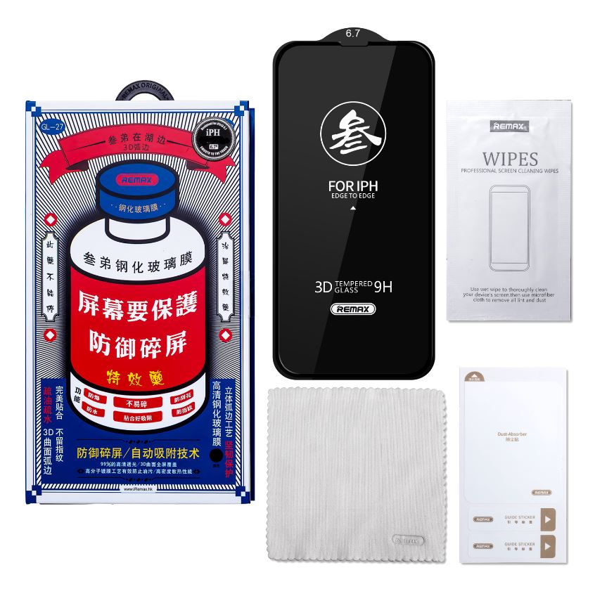 Защитное стекло Remax GL-27 Medicine 3D — полное покрытие экрана, 9H, чёрное, для iPhone 17 Pro Max