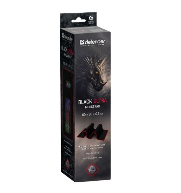 Главная Ι Компьютерная периферия Ι Разное полезноеКоврик игровой Defender, Black Ultra, 800х300х3мм, ткань, резина, чёрный