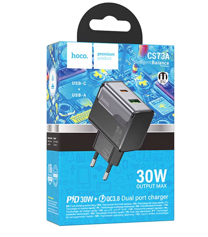 Сетевое зарядное устройство Hoco CS73A Star Speed — 30 Вт USB-C + 18 Вт USB-A, PD30W + QC3.0, EU вилка