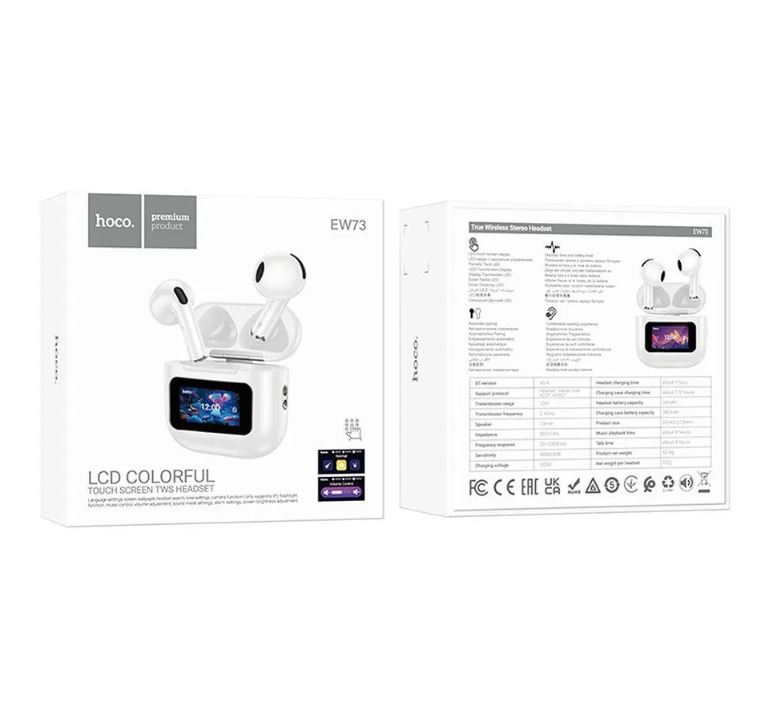Беспроводные наушники HOCO EW73 TWS — Bluetooth 5.4, умный сенсорный экран, индикация заряда и времени, до 4 часов работы