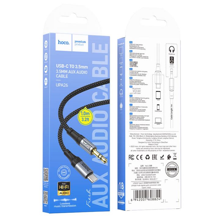Главная Ι Устройства передачи данных Ι AUX-кабельКабель AUX, Type-C(m) - Jack 3,5mm(m) HOCO UPA26, Fresh, 1.0м, чёрный