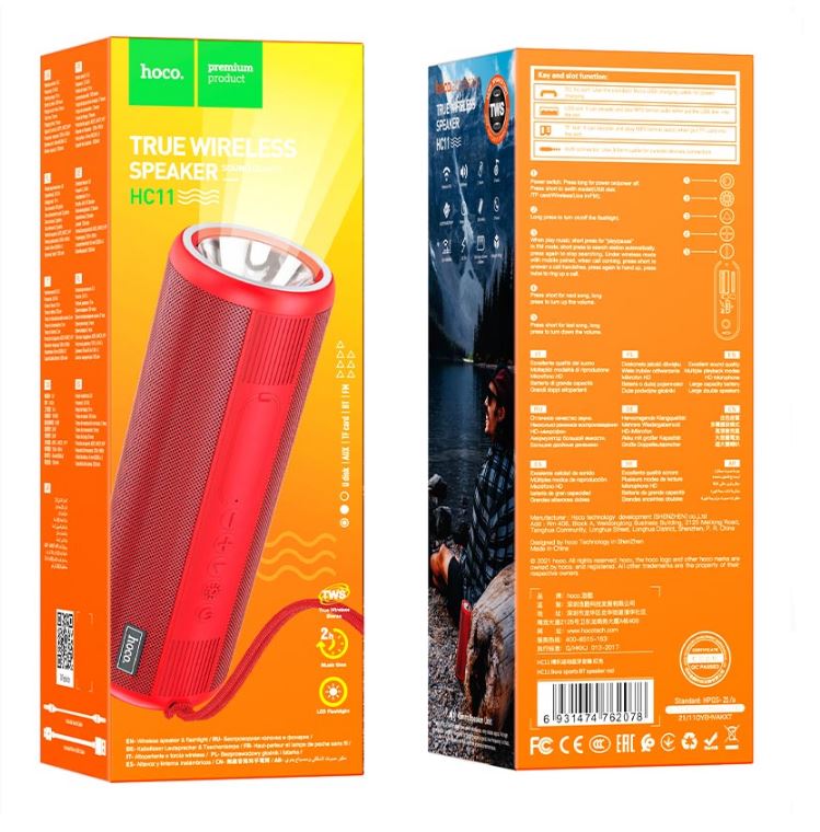 HC11 Bora — это компактная, но мощная портативная колонка с поддержкой Bluetooth 5.0, встроенным фонариком, а также множеством способов воспроизведения: от беспроводного подключения до USB-флешки, карты памяти, FM-радио и AUX-кабеля.