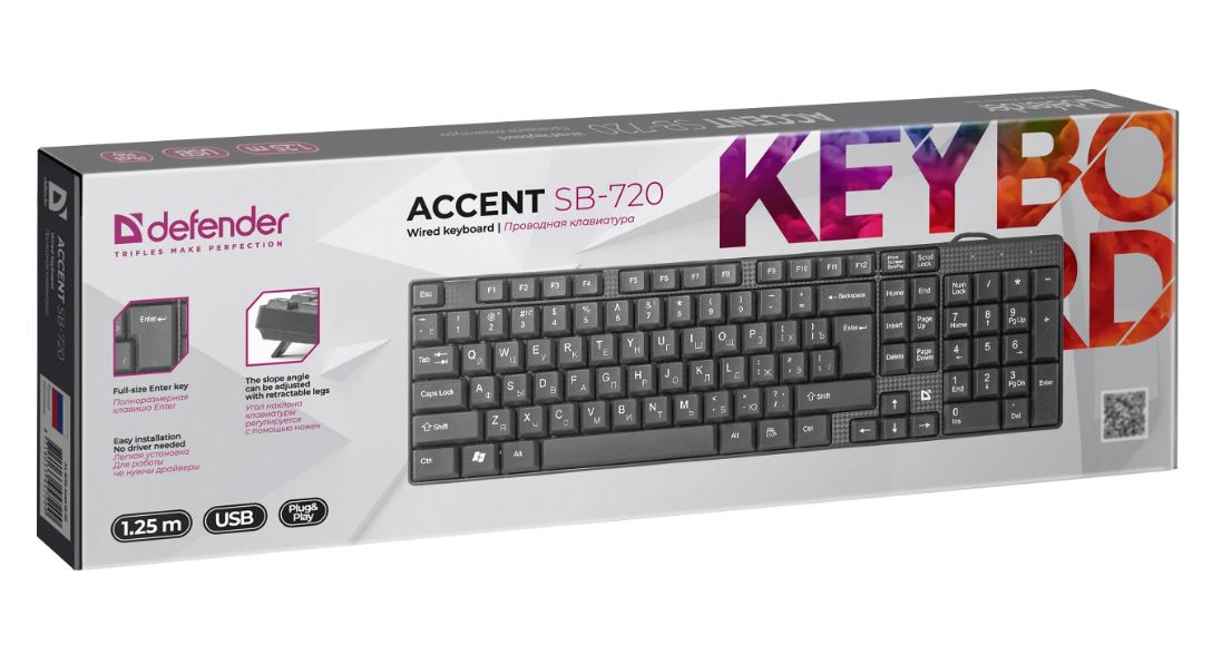 Главная Ι Компьютерная периферия Ι КлавиатураКлавиатура проводная Defender, Accent, SB-720, мембранная, 1.25 м, цвет: чёрный