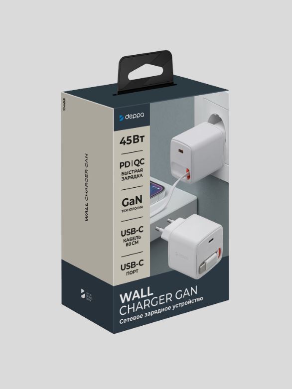 Deppa GaN 45 Вт — это двухпортовое сетевое ЗУ на базе передовой технологии GaN (нитрид галлия), обеспечивающее максимальную скорость зарядки для всех ваших USB-C устройств.