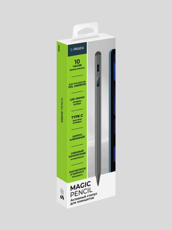 Deppa Magic Pencil — это активный стилус с магнитным креплением, разработанный для планшетов, смартфонов и других устройств с сенсорными экранами.