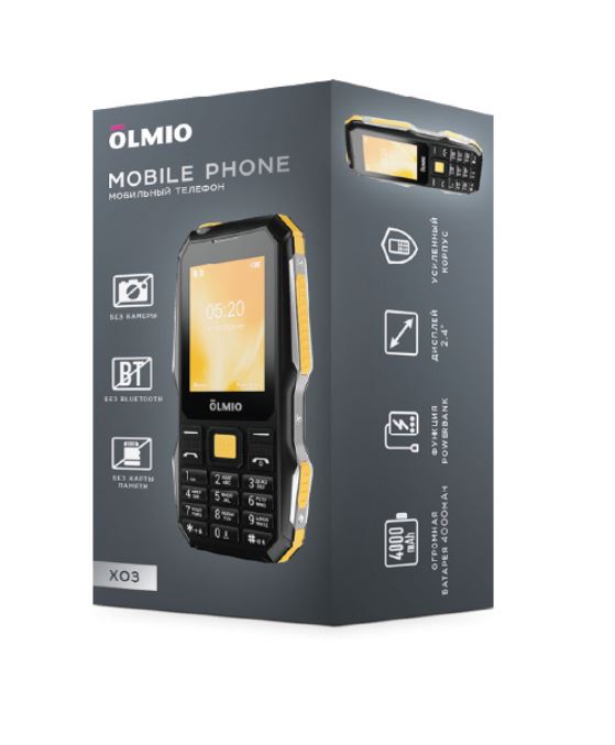 Olmio X03 — это прочный и функциональный мобильный телефон с усиленным корпусом, встроенным фонариком, FM-радио и аккумулятором на 4000 мАч.