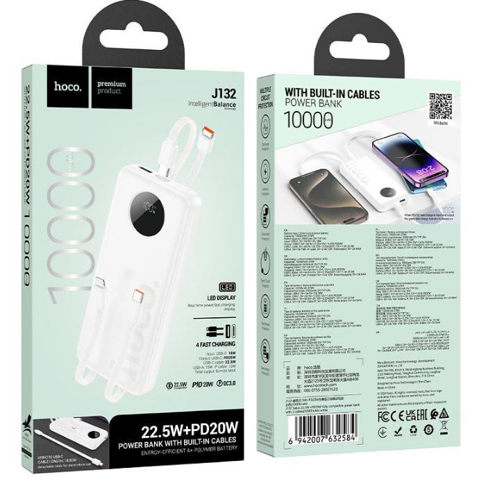 Главная Ι Зарядные устройства Ι Портативное зарядное устройство Power Bank Ι Портативное З/У 10000-11000mAhАккумулятор внешний HOCO J132, Sabio, 10000mAh, PD20W, QC3.0, белый