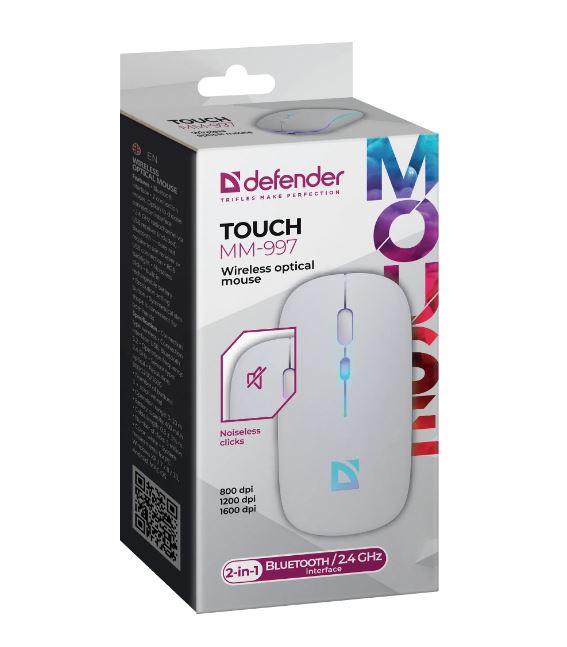 Главная Ι Компьютерная периферия Ι Мыши Ι Беспроводные мышиМышь беспроводная Defender, MM-997, Touch, оптическая, белый