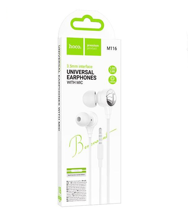 HOCO M116 — это проводные наушники с микрофоном и функциональным управлением одной кнопкой.