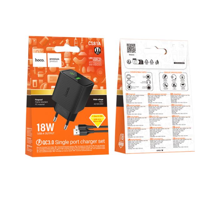 Сетевое зарядное устройство Hoco CS81A — 18 Вт, QC3.0, LED-дисплей, USB-A