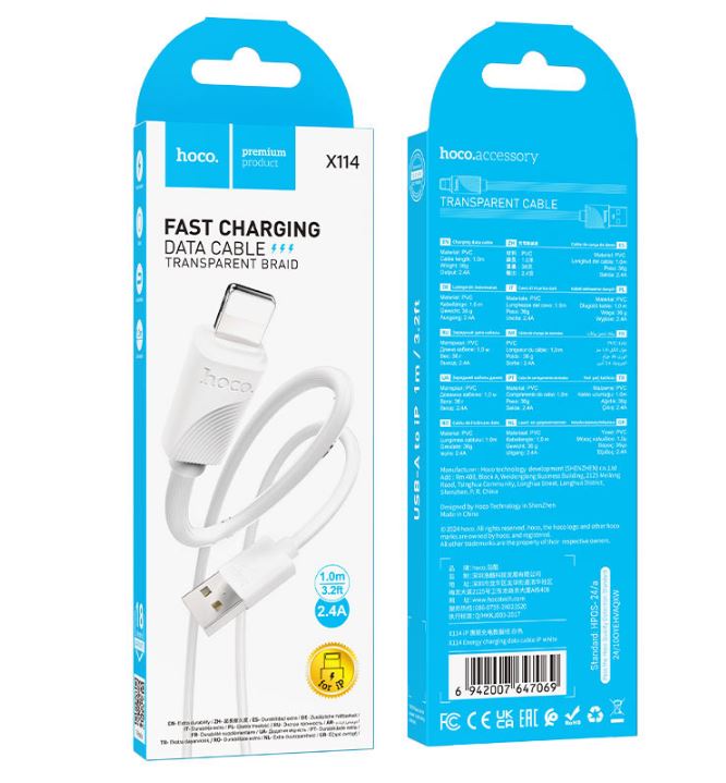 Главная Ι Аксессуары для Apple Ι Кабель для iPhone, iPad, iPod Ι кабель iPhone 6Кабель USB - 8 pin HOCO X114 Energy , 1.0м, 2.4A, белый
